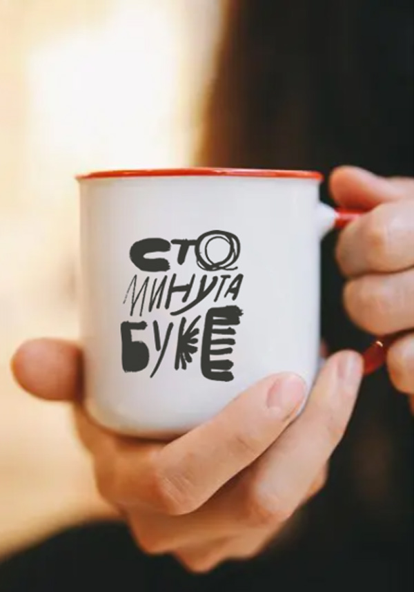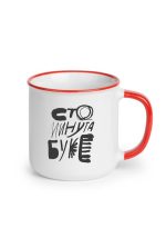 Bela osnova sa crvenim obodom i drškom / crna štampa |